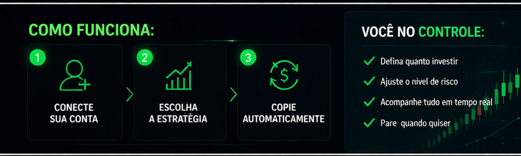 Com uma única assinatura, você pode escolher uma ou mais estratégias a serem seguidas, cada uma operando ativos distintos como: